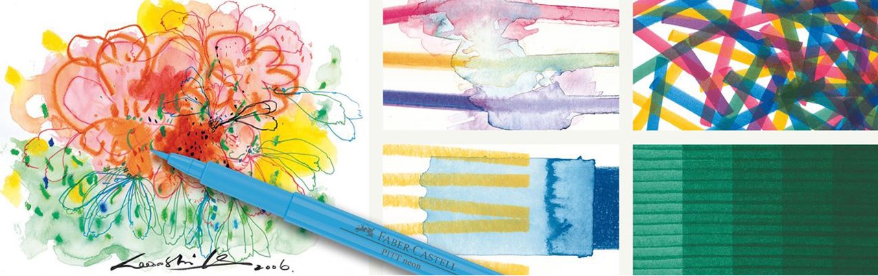 The dry Pitt Artist Pen can be worked over with a water-soluble Albrecht Dürer pencil or watercolour without dissolving again. The luminance and colour depth remains intensive and stable.