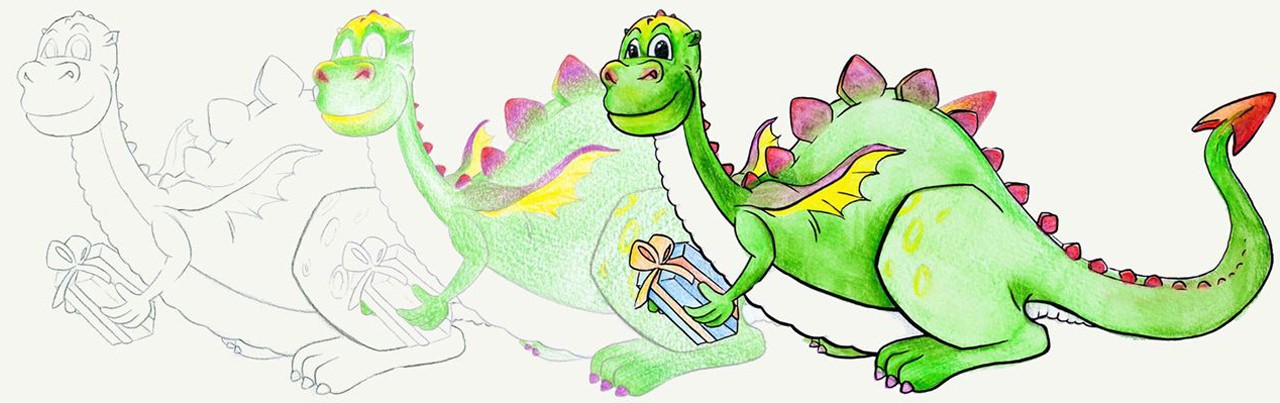 This little dragon has a special present for you! What might be in the box he is carrying? Bring this dragon to life by applying different colouring techniques. Chose the colour that you like the best. To make the best out of your drawing, use our water dissolving Colour Grip pencils.