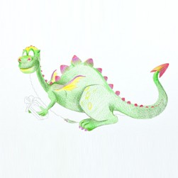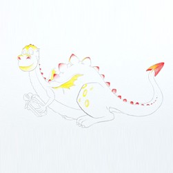 Use a wet and smaller brush to dissolve the colours on the dragon's head. Look how happy the dragon is to be finally in colour.