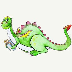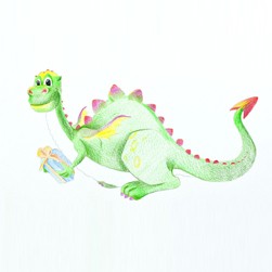 Now you can colour the tiny present and draw the eyes of the dragon, so he can see.