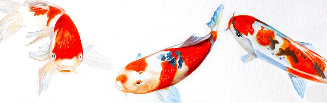 Print the templates onto two DIN A4 sheets of printer paper. Glue the two pages together on the front. Shade the back of the paper with the Graphite Aquarelle pencil. Place the paper on top of the watercolour paper (the shaded side facing downwards) and trace the outlines of the koi fish with the Castell 9000 graphite pencil. The outlines should now be visible on the watercolour paper.