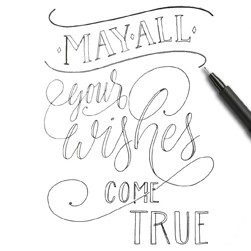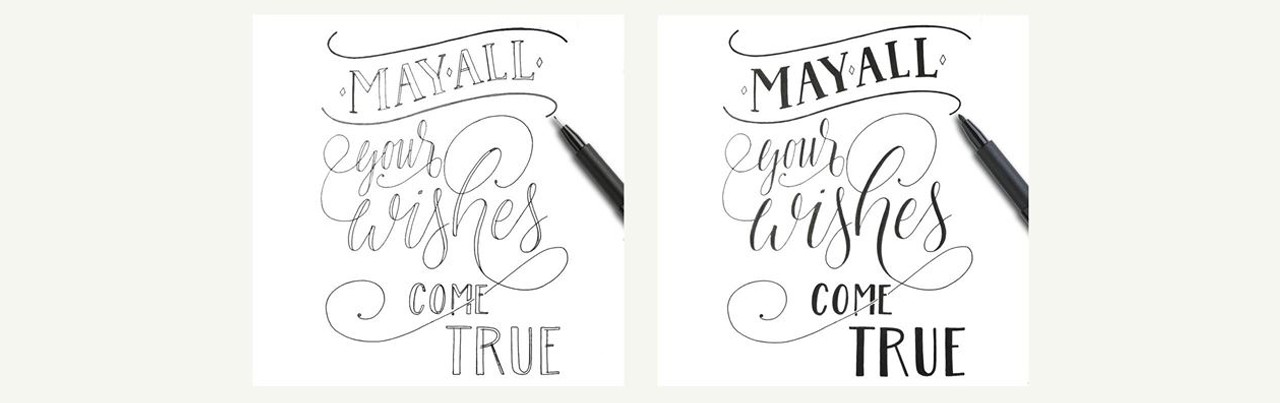 Now draw a detailed preliminary sketch of the writing. It's best to also sketch the thick/thin style for the cursive writing to help avoid mistakes later. Anywhere where you draw a downward stroke while writing - i.e. draw a line from top to bottom - the line gets thicker.